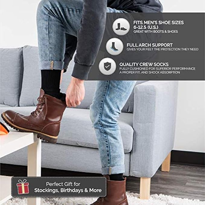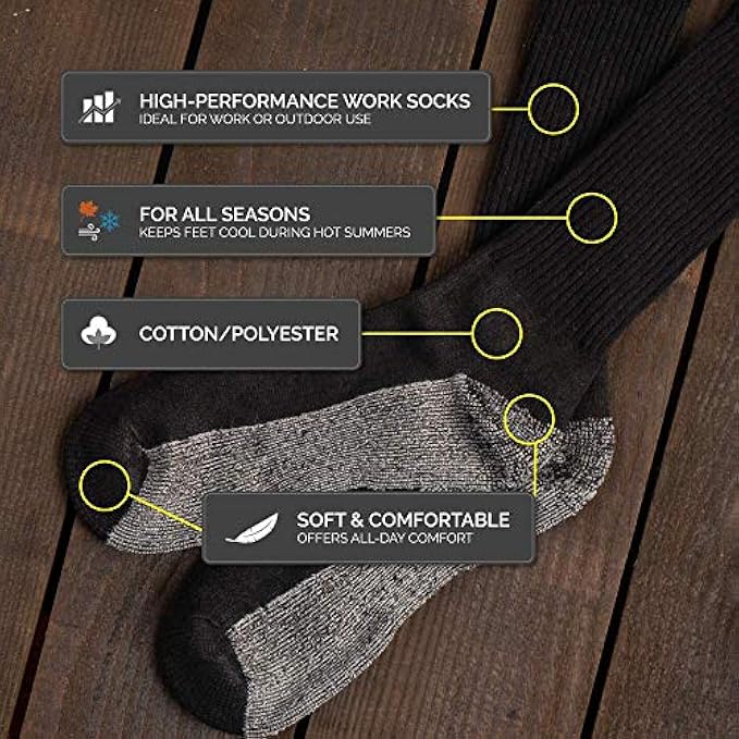 All-Weather Work Socks: With full arch support and a reinforced heel, these socks are ideal for work or outdoor use. Wear them while doing heavy-duty jobs, camping, hiking, or hunting.