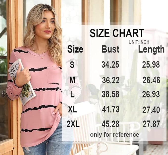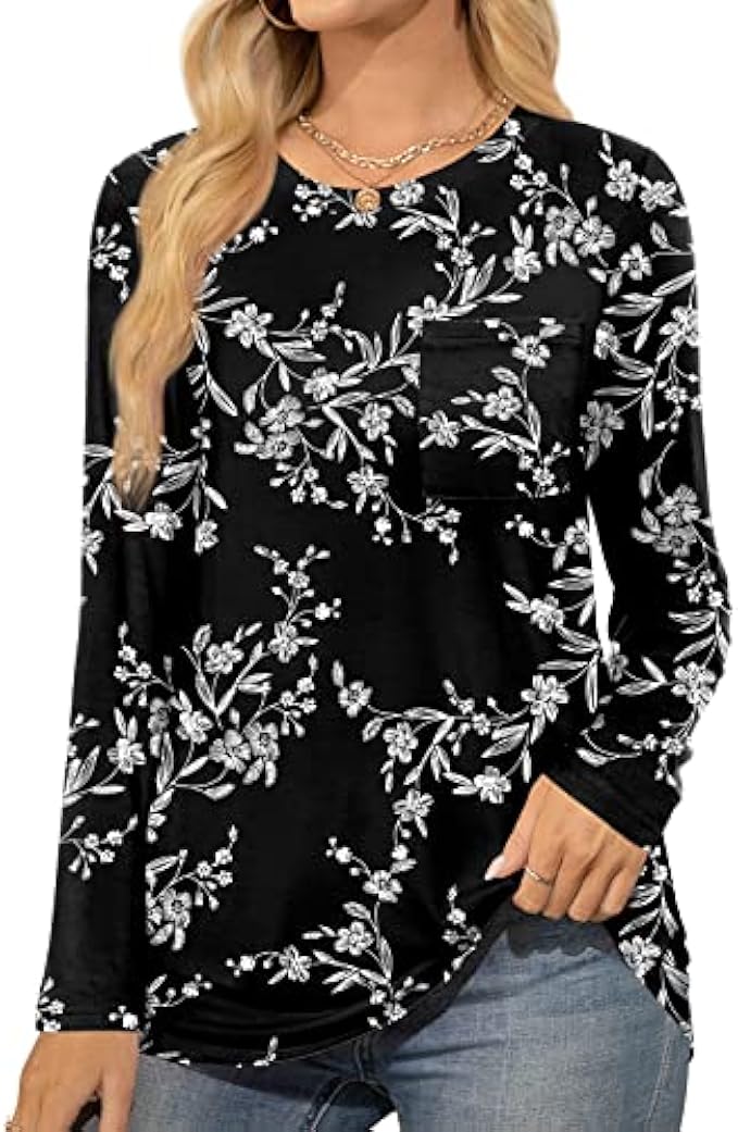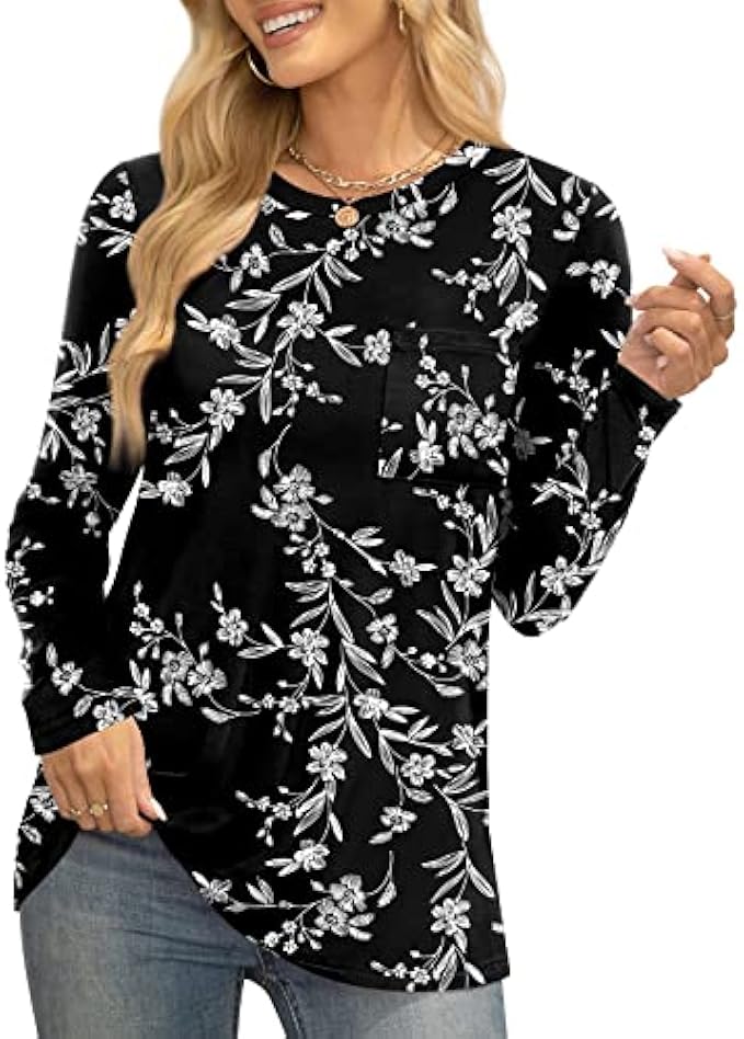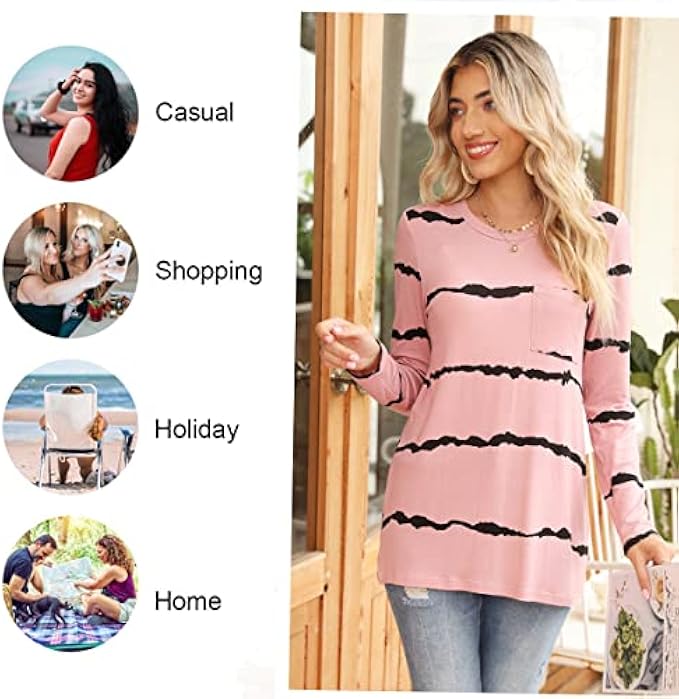 • ❤ 【 Features 】 casual top, crewneck tops tee, long sleeve tshirts with pocket, stretch loose blouse, solid color and print, on the hip length, basic, plain, trendy and elegant.