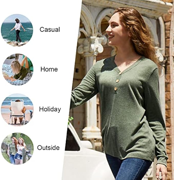 ❤ 【 Features 】 casual style top, vneck button tops tee, long sleeve tshirts, stretch loose blouse, solid color and print, on the hip length, warm, plain, trendy, elegant and skin-friendly.