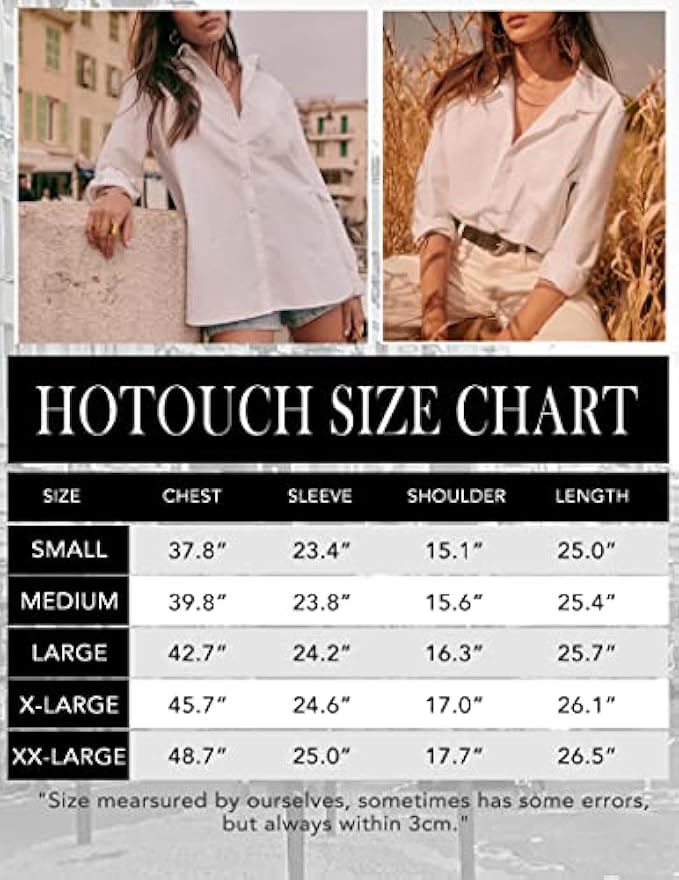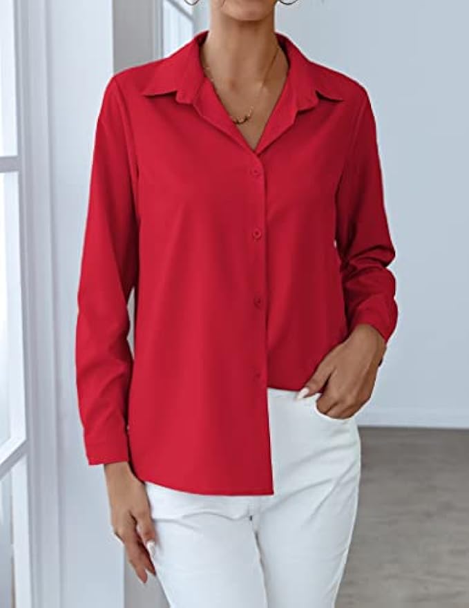 • CLASSIC SHIRT COLLAR - An essential for every wardrobe: plain colored, slim fitted shirt blouse with a shirt collar. You can unbutton a button or two to create a v-neckline, sleeves can be rolled up to be 3/4 sleeves. Relaxed fit style, great for all body figures. Casual style and multiple colors for your choice.