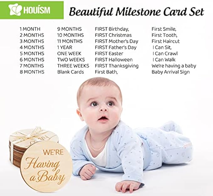 HOUÍSM Baby Monthly Milestone with Announcement Sign, Pregnancy Announcement, Newborn Photoshoot Props and Baby Shower Gifts Set for Boys and Girls to Commemorate Baby's First Year of Life