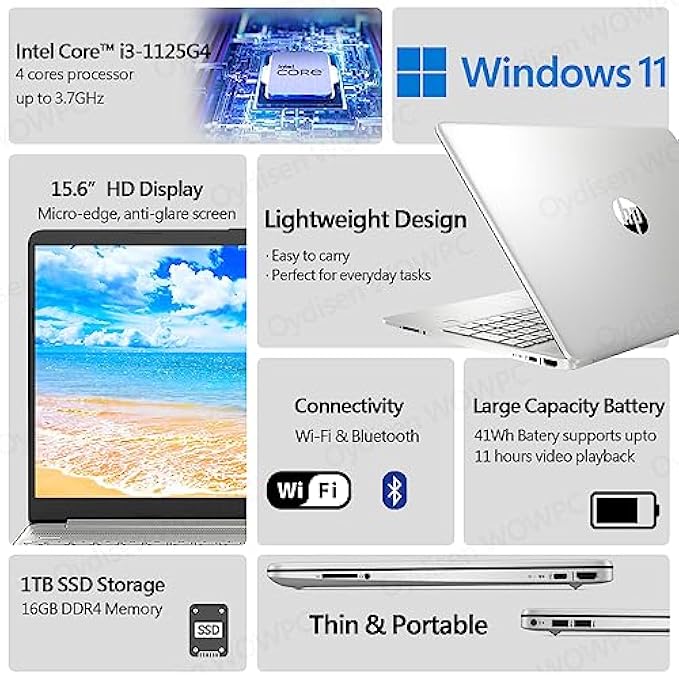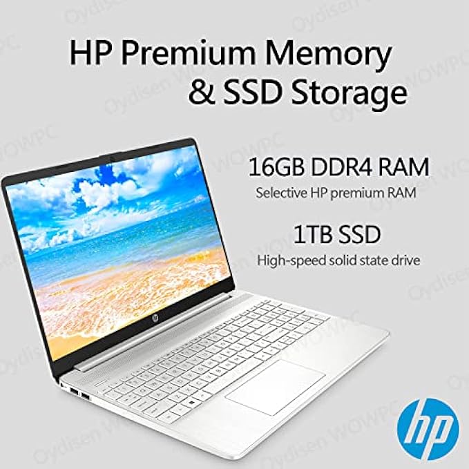 HP 15.6" Laptop with Intel 4-core CPU, 15.6" HD LED Display, Intel Quad-core Processor, Bluetooth and Wi-Fi, HDMI, Long Battery Life, Windows 11 Home in S Mode(16GB RAM | 1TB SSD)