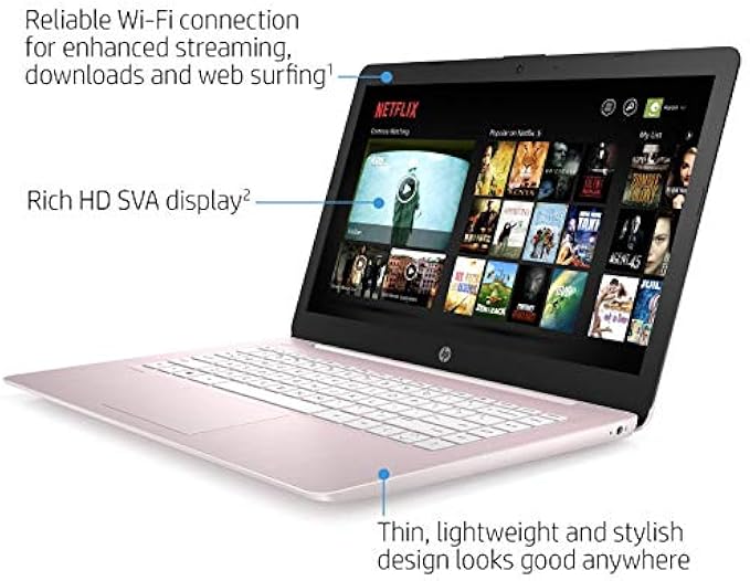 【 14" HD LED Display】Display: 14" HD (1366x768) diagonal HD, SVA, BrightView, micro-edge, WLED-backlit Ideal for Home, Student, Professionals, Small Business, School Education, and Commercial Enterprise, Online Class, Google Classroom, Remote Learning, Zoom Ready. 【 Intel Celeron N4000 Dual-Core Processor 】Equipped With The Intel Celeron N4000 Processor Series,1.1 GHz base frequency, up to 2.6 GHz burst frequency, 4 MB cache, 2 cores . Experience Intel performance with entertainment features and fast connectivity. The Intel Pentium processor delivers performance in a new computer that fits your lifestyle and budget. 【4GB DDR4 RAM + 64 GB eMMC Storage】 4GB DDR4-2400 SDRAM Memory; Hard drive: 64 GB eMMC for fast boost and running; This electronic gift, holiday gift offers a good experience for watching videos, browsing the web, remote work, or study from home 【 Windows 10 Home in S mode 】Windows 10 in S mode is a version of Windows 10 that's streamlined for security and performance, while providing a familiar Windows experience. (You can EASILY switch to regular windows 10 : Press "Start button" bottom left of the screen; Select "Settings" icon above "power" icon;Select Update & Security and Activation, then Go to Store; Select "Get" option under "Switch out of S mode"; Hit Install.) 【 Authorized Hubxcel Bundle 】 13.27 x 8.90 x 0.70 Inches, 3.17 lbs. 1x HDMI, 2x USB 3.1, 1x USB 2.0, 1x headphone/microphone combo, 1x micro SD media card reader WiFi, Bluetooth, HP TrueVision 720P Camera with integrated dual array digital microphones,Up to 11 Hours Battery Life, rose pink, + Hubxcel Cable Accessories Included