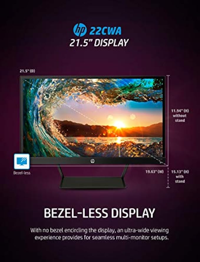 HP Pavilion 22cwa 21.5-Inch Full HD 1080p IPS LED Monitor, Tilt, VGA and HDMI (T4Q59AA) - Black