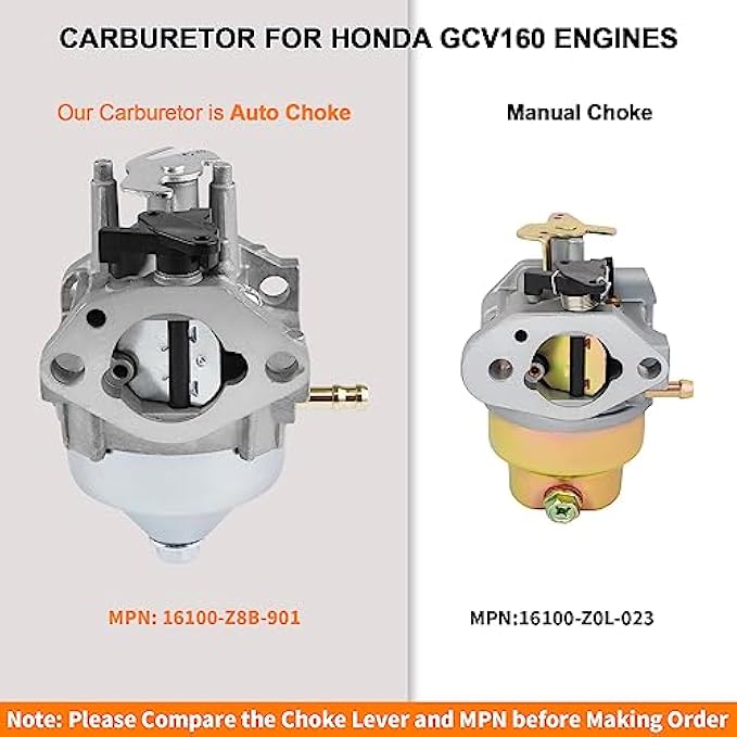 • 16100-Z8B-901 (BB76A A) GCV160LA0 Carburetor for Honda GCV160LA0 S3B, GCV160LA0 S3LB, GCV160LA1 S3B, GCV160LA1 S3B/A, GCV160LA1 S3LB, GCV160LA1 S3LB/A
