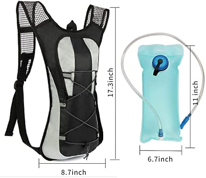 【Large capacity hydration bag】: The 2L hydration bladder can be removed from the backpack for easy cleaning, the rubber mouthpiece has a simple on-off valve, just pull it up when you use to drink water, press down to secure the water from spilling make sure it's leak-free. Gently biting down the mouth piece to draw water glow into your mouth.