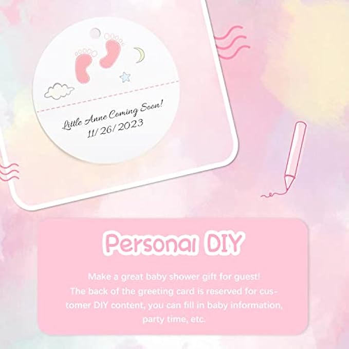 • ?【BABY PARTY FAVOR FOR GUESTS】Comes with 12 pcs bath bombs baby shower favors in a paper individually wrapped, 12pcs pink organza bags, 12pcs little pacifier ornaments, 12pcs thank you DIY card, you can personalized the name month and year. Not only a cute decoration on the main table, and but also an adorable shower gift for guests.