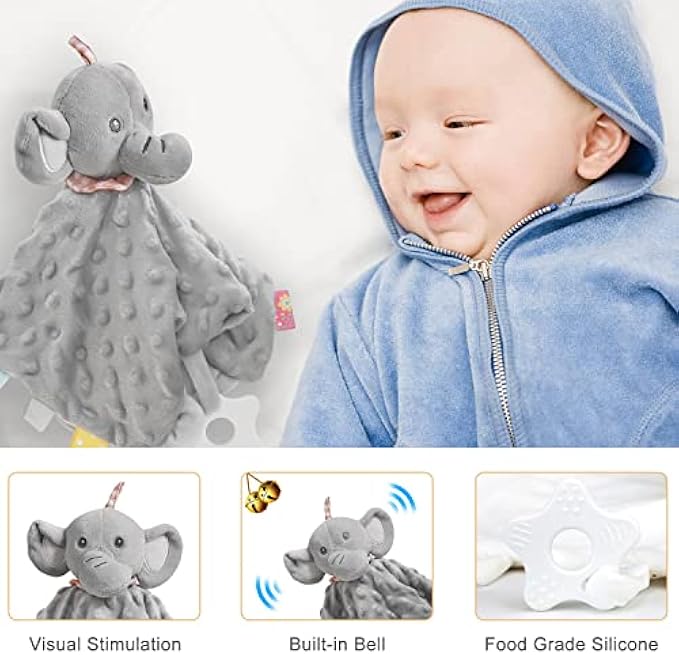 • ??✅【BEST QUALITY FOR YOUR BABY】Our cozy baby blanket choose environment-friendly and safe flannel fabric, microfiber makes baby feel softer, keeps your little one babies comfortable and warm from head to toe. Baby snuggle blankets keep babies feeling as secure as they are in mom's arms, perfect size and shape for little hands, brings security and a sense of comfort to your little one. Built-in bell adds sound stimulation and a play element.