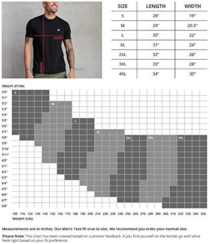 • Our mens tee shirts fit true-to-size. Please refer to the size chart to find the perfect men t shirt for you