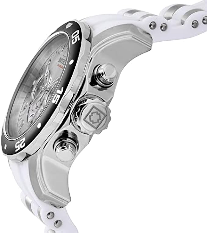Flame Fusion crystal; Push/pull crown; Uni-directional stainless steel bezel with black top bezel ring; Functional Subdials: 60min, 60sec, 24hr; 100 meter water resistant: Suitable for recreational surfing, swimming, snorkeling, sailing and water sports. Not suitable for diving.