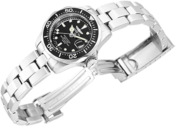 Stainless steel case 24.5mm diameter x 11mm thick; Black dial; Luminous hands and hour markers