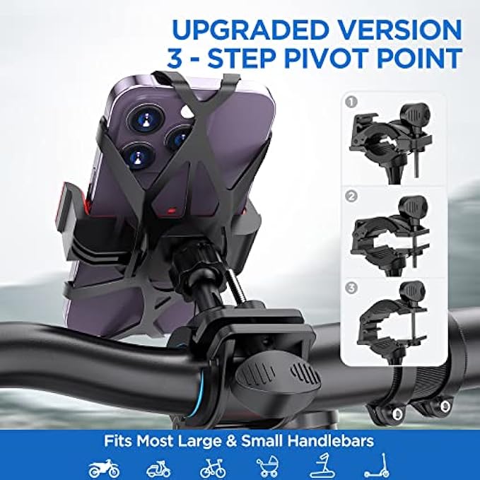 【Strong Grasp Motorcycle Phone Mount, No Worry about Bumpy 】Grip and protect your phone in all directions with phone mount and to prevent you device fall, make sure the safety of the mobile phone in high-speed cycling or on a bumpy road.