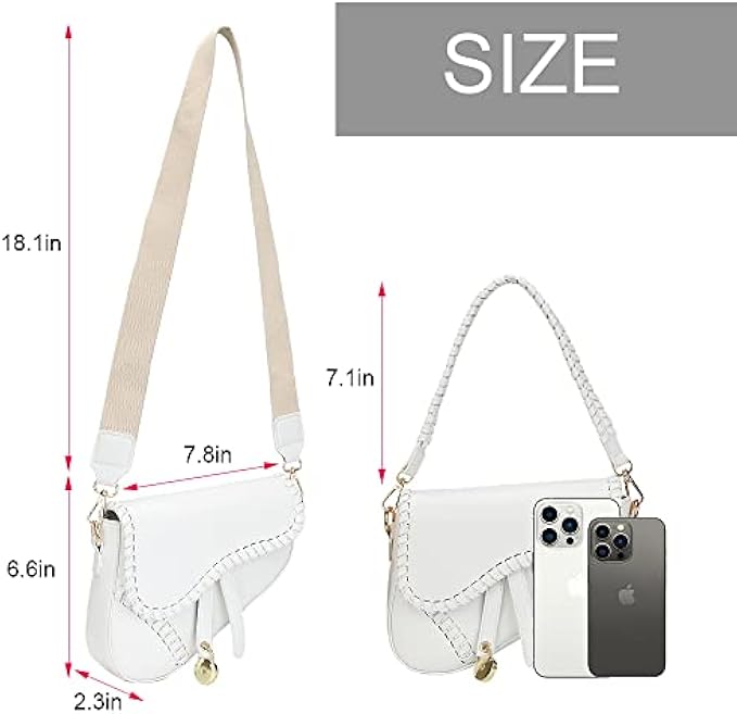 Vegan Leather Imported MATERIAL: Saddle bags are made of high quality soft PU leather, smooth metal zipper make the crossbody bag more elegant and durable, Unique constructed and holds it shape, good to use for many years. SIZE: 7.8 x 6.6 x 2.3 in (L x H x W).Small purse can accommodate mini wallets, cosmetics, skin care products, keys, sunglasses and mobile phones, etc. This cute purse meet most of your needs to store daily supplies. TRENDY DESIGN: The small shoulder bag covered with unique look, this stylish and luxurious leather multifunctional bag will make you stand out in the crowd. USE OCCASION: These bags fit into your wardrobe seamlessly. The clutch purses, underarm handbags is ideal for working, dating, party, evening, shopping, traveling, beach and other activities. IDEAL GIFT: This small purse is a wonderful present for girlfriend, wife, mother, and friend on Anniversary, Birthday, Valentine's Day, Mother's Day, Thanksgiving, Christmas, Wedding Anniversary.