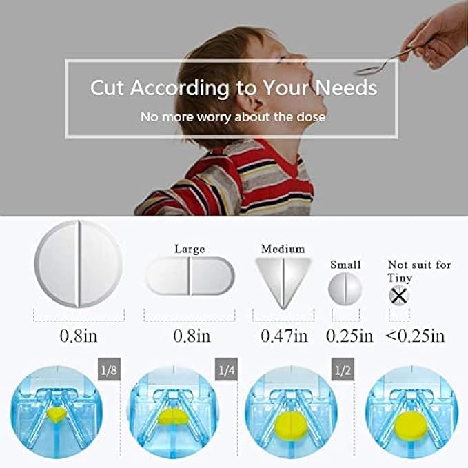 【For Any Pill Up To 0.8" Size】Pill cutter is easy to cutter pill into 1/2, 1/4, 1/8. Best pill splitter for small pills or 0.8" large pills. Some pills have powder, most do not. it depends on pills.