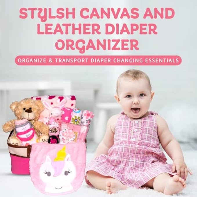• Beautiful Presentation, Perfect Baby Shower Gift - No need for a fancy gift box to wrap our new born baby package. Our unique new baby girl shower gifts set comes in a stylish leather and waterproof canvas diaper organizer that doubles as a changing station or storage for cars and playrooms.