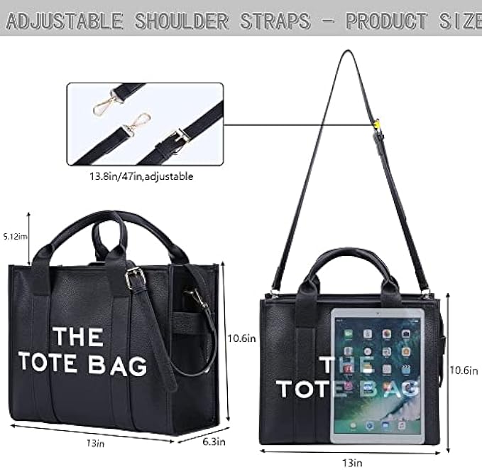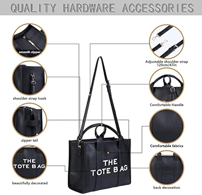 Pu Leather Imported Leather lining Zipper closure ❤【High Quality Material】: The tote bag is made of high-quality PU soft leather, which can accommodate extraordinary quality between square inches, bright skin tone, soft and comfortable hand feeling, exquisite workmanship, full of high-end feeling. ❤【Size & Capacity】: The large tote bag size is 13*10.6*6.3in(33*27*16cm), fashionable and practical, large enough to hold all daily accessories, including clothes, documents, lunch boxes, drinks and snacks etc. ❤【Practical Design】: Work tote bags for women designed with a main compartment and an inner patch pocket with a zipper, it is easy to access your wallet, mobile phone, umbrella, sunglasses, passport, books, cosmetics, etc. ❤【Multipurpose】: We have added a beautiful shoulder strap to this handbag, adjustable and detachable, it is comfortable to carry by hand or on the shoulder, you can use it as a handbag, shoulder bag, crossbody bag. ❤【Suitable for Everyday Day】: This tote bag is stylish and beautiful, it is perfect for shopping, parties, dates and vacations. It is also the best gift for women on important occasions such as Valentine's Day and anniversaries.