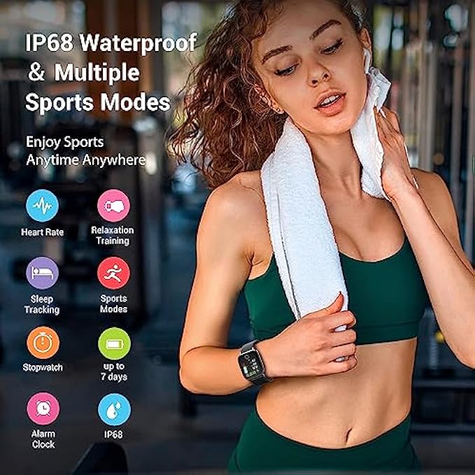 Long Battery Life and IP68 Waterproof: This fitness watch only requires 2 hours of charging and can be used for 5-7 days. IP68 waterproof rating can withstand daily sweat and rainy day, allowing you to fully enjoy your workouts.