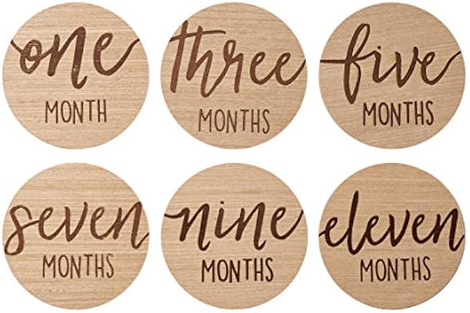 • Includes 6 double-sided circular wooden photo props for capturing baby's first year and monthly milestone
