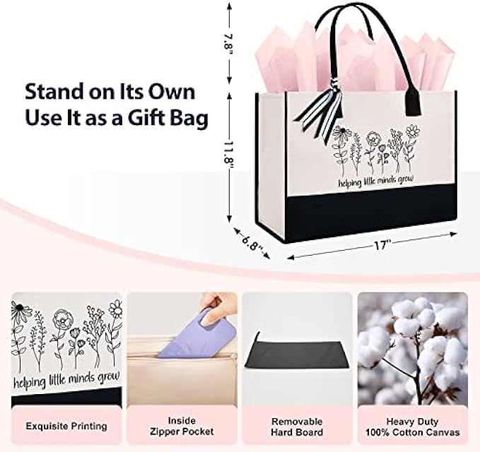 TEACHER GIFTS FOR WOMEN: This teacher appreciation-themed tote bag is ideal for a teacher appreciation week, end of the year, back to school, holiday gift, valentine gift, birthday gift or funny gift for a teacher. With the thoughtful design, making it a unique gift for daycare teacher, preschool teacher, kindergarten teacher, new teacher, dance teacher, science teacher, art teacher, history teacher, mentor teacher, teacher assistant, spanish teacher, music teachers and math teacher.