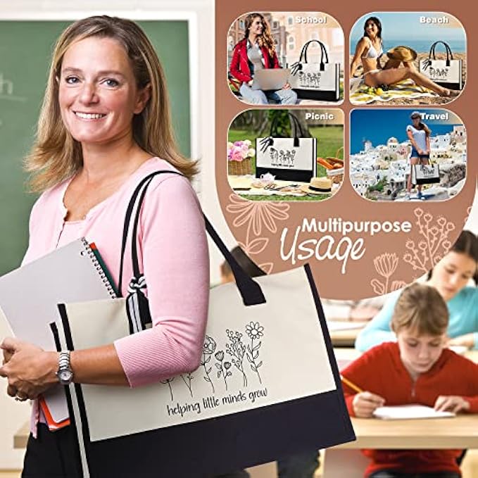 TEACHER GIFTS FOR WOMEN: This teacher appreciation-themed tote bag is ideal for a teacher appreciation week, end of the year, back to school, holiday gift, valentine gift, birthday gift or funny gift for a teacher. With the thoughtful design, making it a unique gift for daycare teacher, preschool teacher, kindergarten teacher, new teacher, dance teacher, science teacher, art teacher, history teacher, mentor teacher, teacher assistant, spanish teacher, music teachers and math teacher.