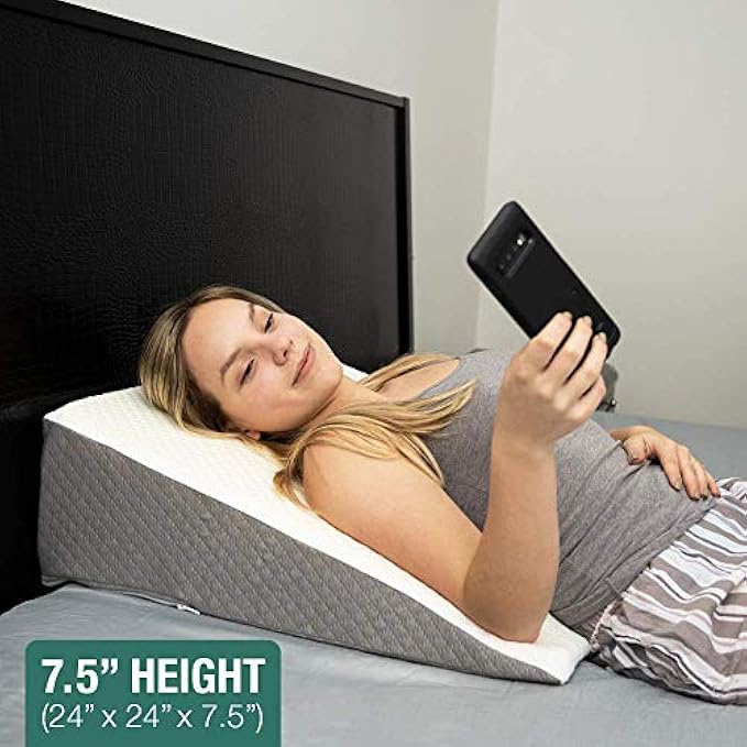 SUPER COMFORTABLE BED WEDGE PILLOW, SNORING PILLOW: Available in 2 height options – 7.5 inch and 12 inch height. (24 x 24 x 7.5 or 25 x 25 x 12) This is the 7.5 inch option. Wedge Pillow