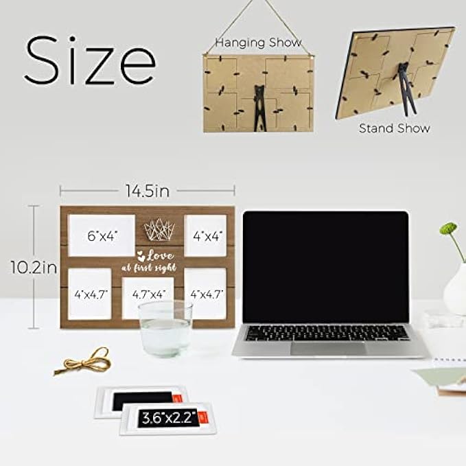 【More Great Times】-Nursery frame dimensions: 17”W x 9.5”H x 0.56”D; 5 Photo inserts: 6”W x 4”H, 4”W x 4”H, 4”W x 4.7”H, 4.7”W x 4”H, 4”W x 4.7”H, multiple photo inserts help you record more beautiful moments