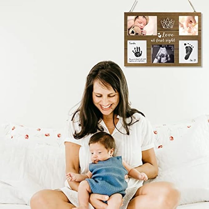 KOIKEY Baby Handprint Footprint Keepsake Kit - Ultrasound and Newborn Picture Brown Nursery Decorative Wood Frame Kit with No-Clean Print Pad for Baby Shower or New Parents Gift