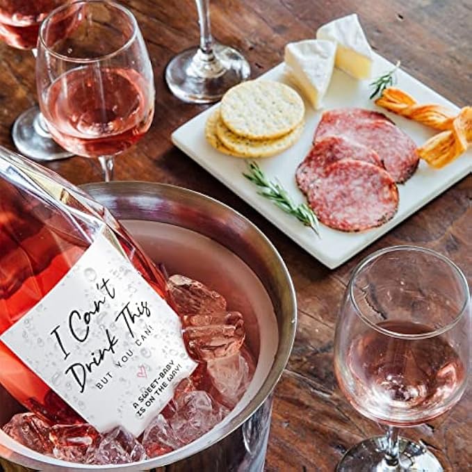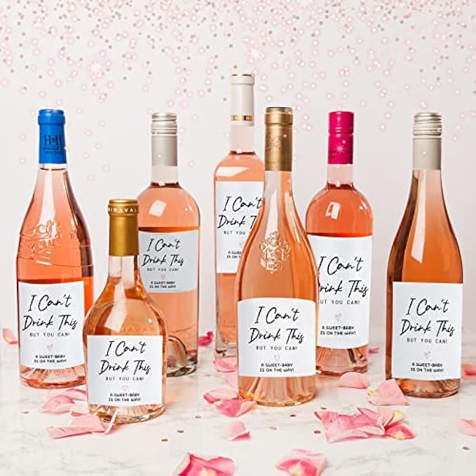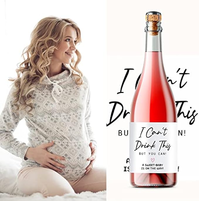 • ??【SET includes】:This SET includes two sizes of 'I can’t drink this but you can' wine labels, the large label (4.75 x 3.75 inches) and small label (4.15 x 3.66 inches), suitable for different-sized wine bottles, with the theme of announcing new baby is on the way.