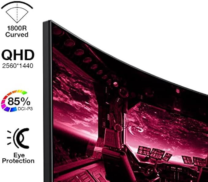 【Curved gaming monitor】144Hz high refresh rate 27-inch ultra-high-definition (2560*1440) curved gaming monitor, 1800R curvature, you can enjoy the cinematic look and feel on the spot. Response speed 1ms MPRT provides comfortable and immersive gaming experience for professional gamers and fast mobile games. The new OSD menu makes it easier to use. Not only the stylish design, but also -5 degree to 15 degree angle adjustment reduce fatigue even after long-term use. 【Wide Viewing Angle VA LED Gaming Monitor】This PC monitor features a high-quality VA panel with both picture quality and color rendering, making images brighter and more lifelike. With an ultra-wide angle of 178°, the brightness and color of the screen will not change even when viewed from an angle. With a 2mm narrow bezel design, the screen is wider and more immersive. Best of all, flicker-free and blue light-free features reduce eye strain. 【Support AMD FreeSyc Technology! 】Up to 144Hz refresh rate and Adaptive-Sync/FreeSyc technology synchronize GPU and display refresh rate to prevent tearing (image shift) and freezing (screen capture) for crisp video playback, and provides a smooth, tear-free gaming experience with incredible image quality 【Enhancing the Game Experience】The game OSD provides a variety of player-centered game modes (FPS/RPG). In addition, you can make settings according to your style, such as black equalizer function, backlight adjustment function when the image is bright, and game picture optimization function. It can be connected to devices with audio output, used to connect HDMI 1.4 + HDMI2.0 + Displayport 1.2 input terminals, HD cameras, laptops, XBOX, PS and other audio devices. The game is more shocking! 【Important Features/After-sale Service】Model 27E6QC, screen ratio 16:9, dynamic contrast ratio 20 million:1, 85% DCI-P3 color gamut, maximum color 16.7 million colors, net weight 5.1 kg, machine size 612.2*452.9*185.1mm, with 1.5m DP cable, audio Audio output interface. 3 Years Product Warranty: 3 years free returns and exchanges. If you have any questions or concerns about the product, please feel free to contact us.