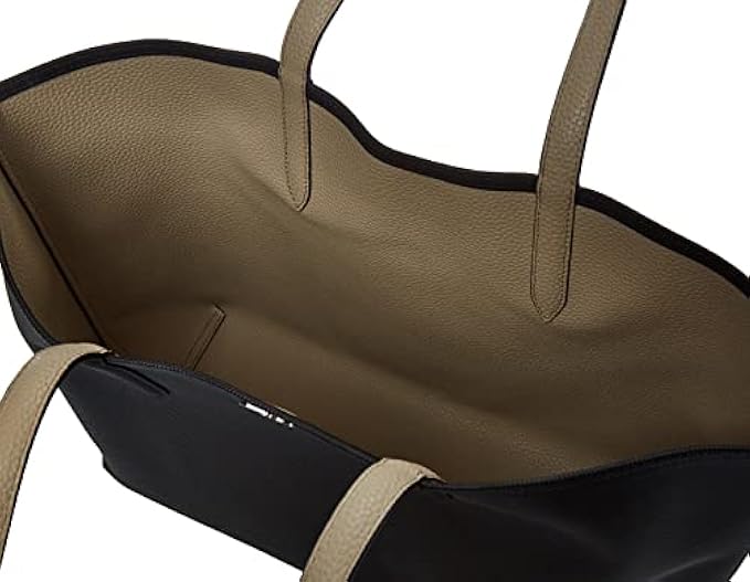 • Flip it and reverse it. This two-color reversible tote bag features a detachable pouch.