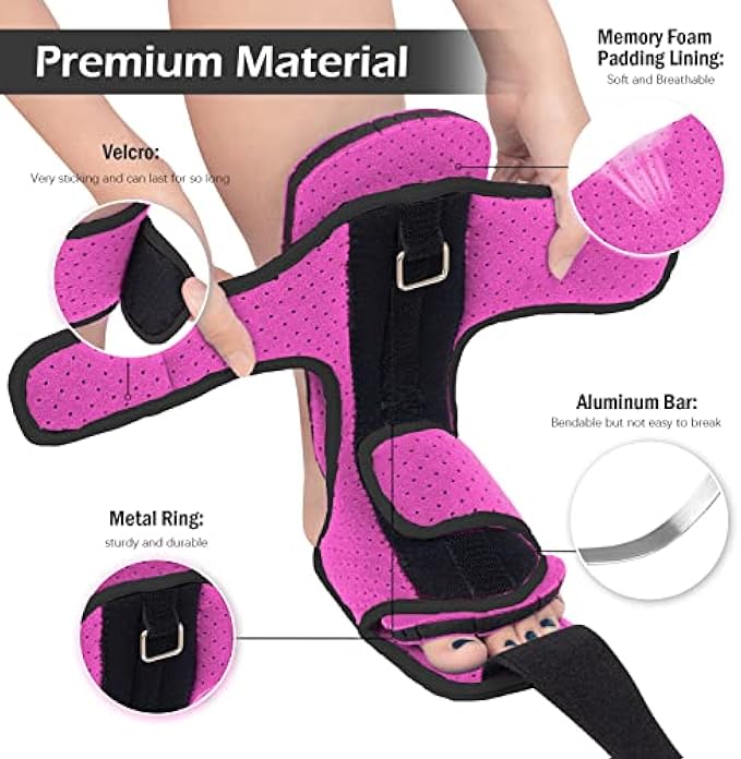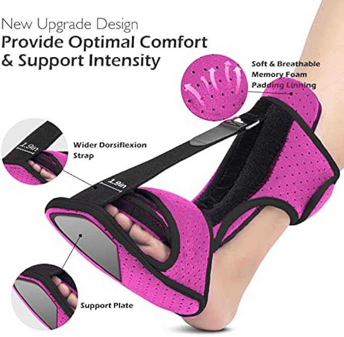 One Size with Beautiful Rose Red Color: This plantar fasciitis night splint has only one average size, both for men and women (measure the circumference of ankle to fit 8.0-15.0/20.3-38.1cm). The beautiful rose red color, I'm sure it’s not for everyone, but women will love it. More Comfortable & Effective with New Design: For this plantar fasciitis night splint, we improved the material of the padding lining (made with memory foam), increased the width of the dorsiflexion strap and designed a support plate at the bottom, which makes a huge difference in comfort and effectiveness.