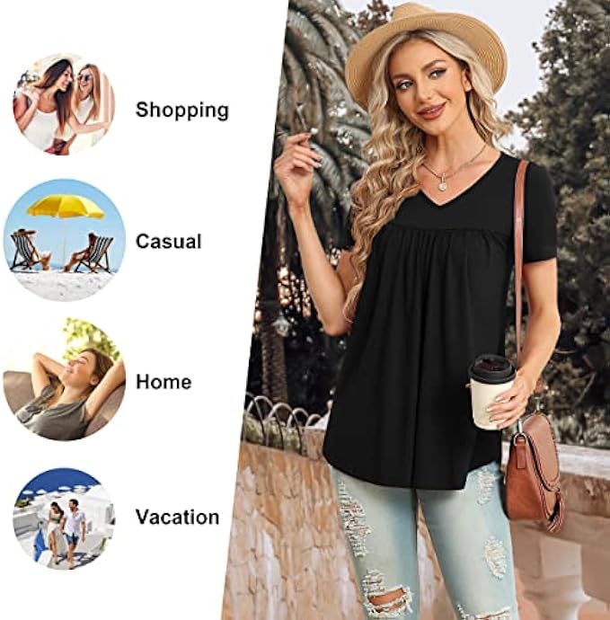 LAOLASI Womens Summer Tops V Neck Short Sleeve Casual Shirt Flowy Tunic Blouse
