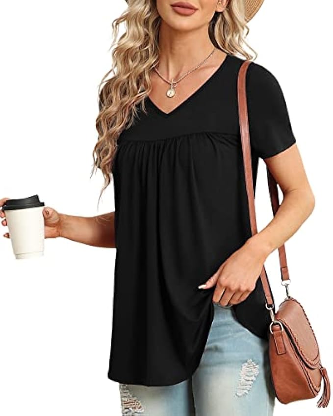 Great stretchy fabric: 95% Rayon, 5% Spandex. Super soft-touch, comfy and elastic. Imported Pull On closure Machine Wash 【 Chic Design 】 Casual style top, V Neck tunic, chest splicing, wrinkle design, short sleeve Tshirt, solid color and printing, horn shaped hem. This is the perfect balance of practicality and fashion. And with its loose and flowy design, it's great for hiding your stomach and creating a slimming effect. 【 Suitable Occasion 】 This V-Neck Short Sleeve Tops match with for any occasion, Suitable for party, shopping, wedding, outdoor, dating, home, club, work, beach, school or leisure day wear, etc. The materials are soft and elastic, Not lined, It is perfect for all seasons. 【 US Size 】 Small/US 4-6, Medium/US 8-10, Large/US 12-14, X-Large/US 16-18, XX-Large/US 20-22, 3X-Large/US 24. Only for reference. 【 Clothing matching 】 This V-neck casual Tunic Top is slim and fashionable, which can better show your figure. Great with necklace, earrings, jeans, shorts, tights, bell bottoms, yoga pants, chiffon cardigan, jacket, sandals and boots. Delicate skin friendly fabric, strong draping feeling, not easy to deform, so that you wear natural, relaxed, dynamic and elegant. 【 Attention 】 1. The "White" and "Floral White" tops looks a little bit see through, suggest wear a nude or lighter color bra or underwear. 2. The Floral Print is random, we couldn't ensure the position of floral print on each dress, but they are definitely made of same pattern fabric. 3. Due to computer image resolution and monitor settings, this tops colors or print may vary slightly depending on the display.