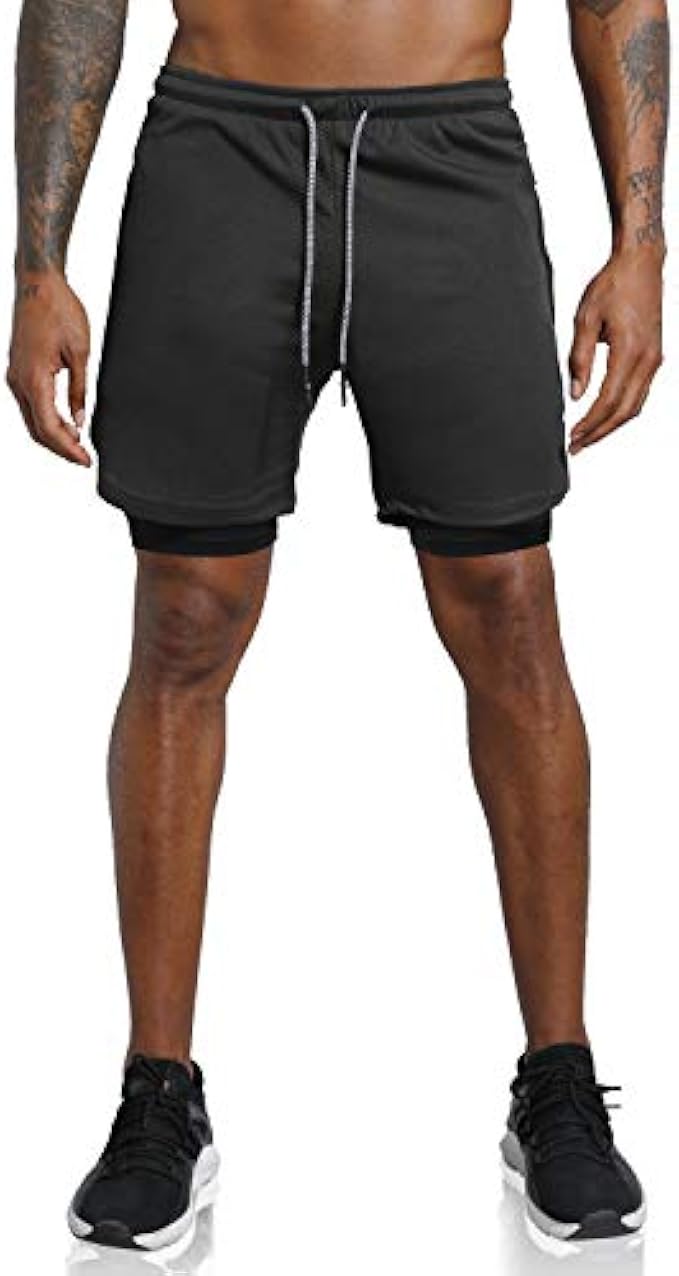 Leidowei Men's 2 in 1 Workout Running Shorts Lightweight Training Yoga Gym 7" Short with Zipper Pockets