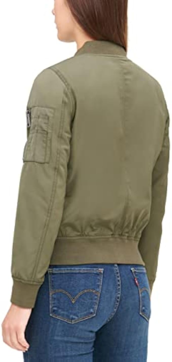 Levi's Women's Poly Bomber Jacket with Contrast Zipper Pockets, Army Green, Small
