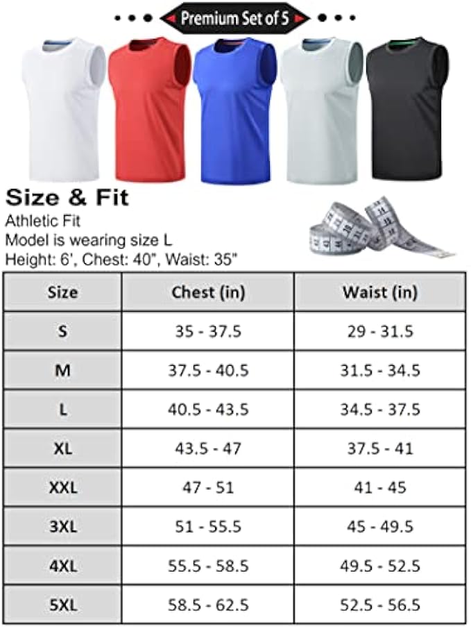 • MAXIMIZE YOUR PERFORMANCE: With our Pack of 5 Men's Stretch Cool Dry Muscle Tank Tops, you'll be ready to crush your workout and take on anything life throws at you.