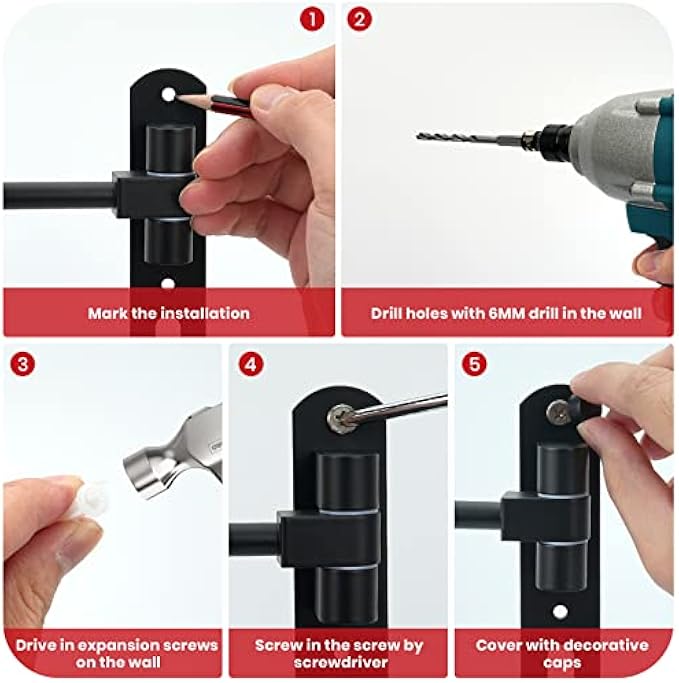 Installing a motorcycle helmet holder on the wall is quick and easy. First, mark the desired location on the wall. Next, drill two holes and insert expansion tubes. Finally, use screws to secure the bracket in place. To finish, screw in caps to cover the screws and maintain a clean appearance.