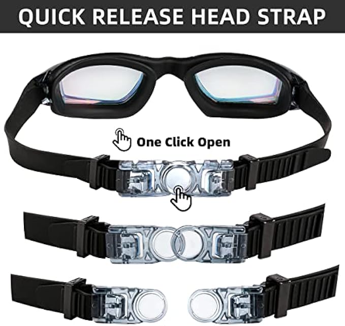 NO FOG: Swimming goggles the lenses are coated with the newest advanced anti-fog, which can prevent fogging to the maximum extent, does not hurt the eyes, and can provide you with clear and long-distance vision when swimming.