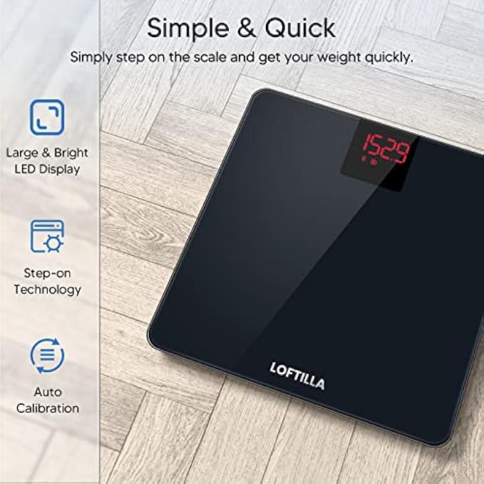 User Friendly--With step-on and auto-calibration technology, you can step on the scale and weigh yourself at once. Bright LED display allows you to get your weight at a glance day or night. Start the scale and log in to the Loftilla Plus, then the scale will get connected to your phone automatically.