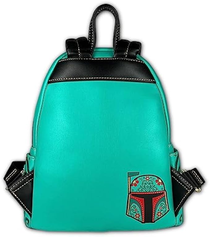 • Front zipper pocket with Boba Fett Zipper Pull Charm. Adjustable shoulder straps. Top carry handle. Printed Fabric Lining.
