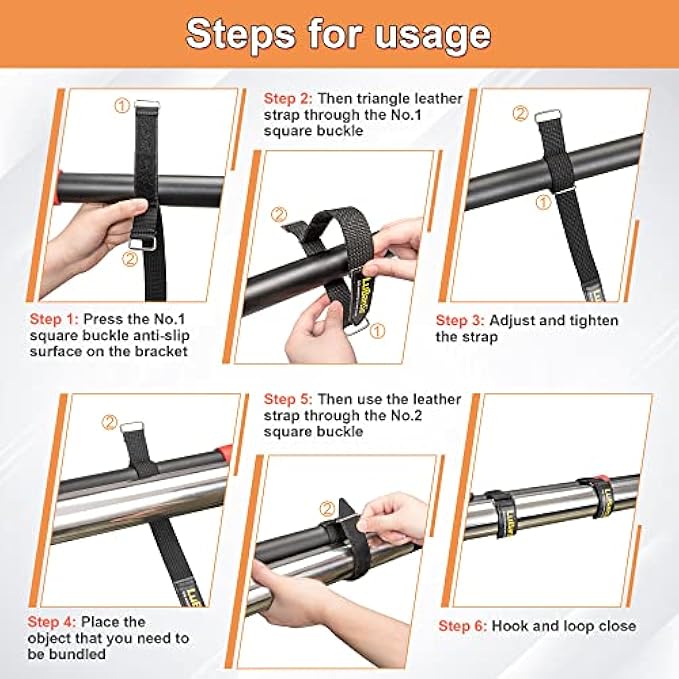 LuBanSir 4 Pack Shovel Holder for Roof Rack, 12" Adjustable Hook and Loop Straps for Mounting Tools and Equipment 0.86” to 2” in Diameter