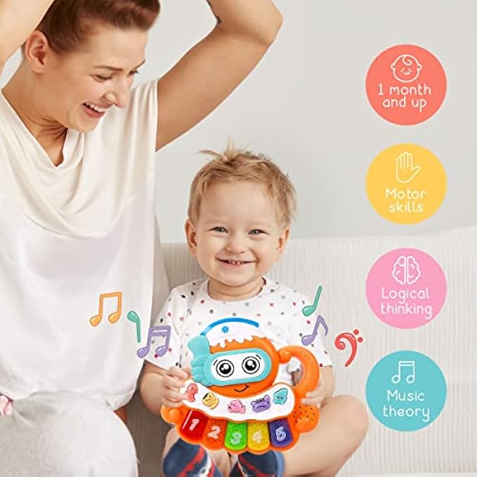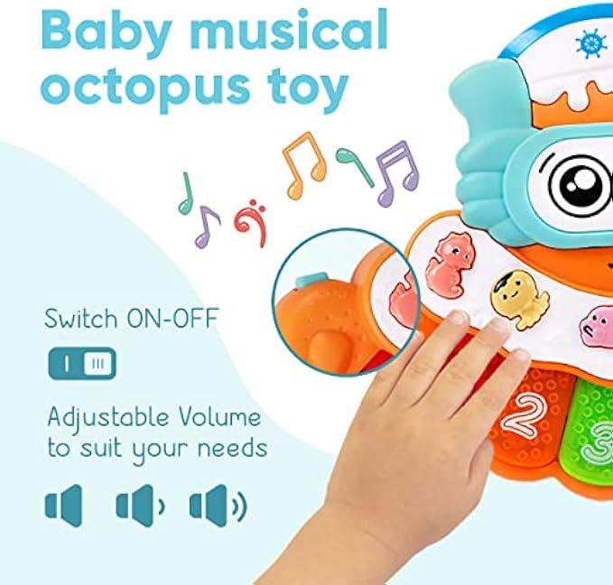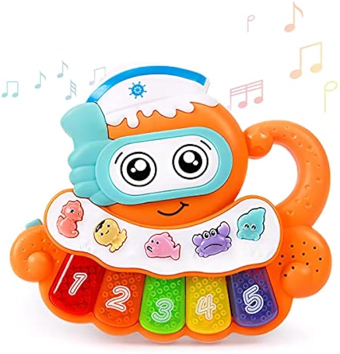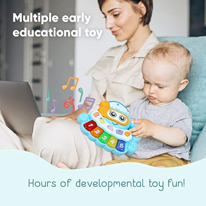 • Fun Early Education Toy: Our Octopus Piano will enchant your baby or toddler while they learn to press the piano keys to create music, hear the names of the numbers, or discover what sounds animals make; Develops fine motor skills and memory