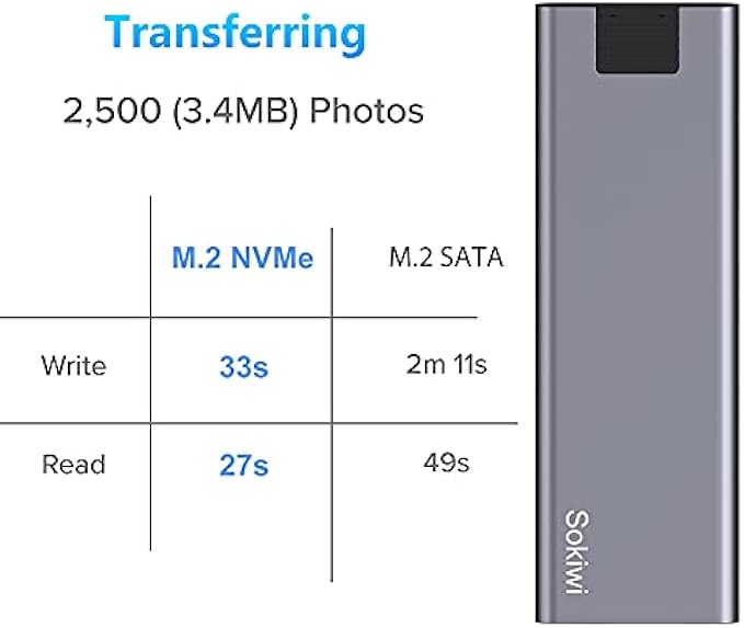 【Chipset RTL9210B M.2 NVMe SATA Enclosure】M.2 Enclosure Up to 10 Gbps High speed M.2 NVME to USB 3.1 Gen 2, 6Gbps speed M.2 SATA to USB 3.1 Gen 1, perfect solution for data transfer and data backup, the actual transfer speed depends on the speed of your SSD, USB Port type, your computer performance, and NVMe /SATA media used etc.One HD movie transfer only takes 2-5 seconds.
