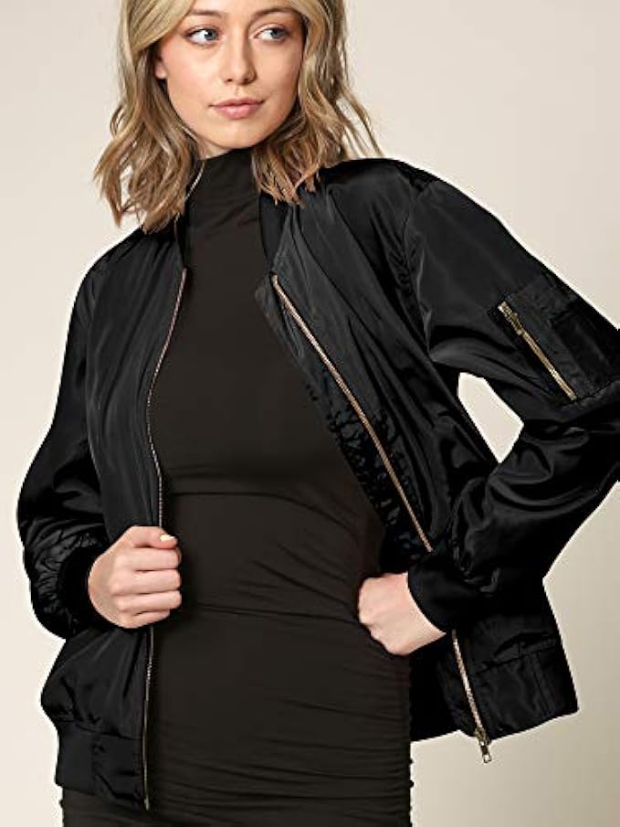 DESIGN: Stand Collar, Ribbed Trim, Zip Front, Bomber Jacket, Two Pockets, Arm Pocket, Solid, Outwear Coat.Pairs perfectly with jeans and tee shirt or hoodie pullover, suitable for travelling / holiday/ casual / outdoor activity.
