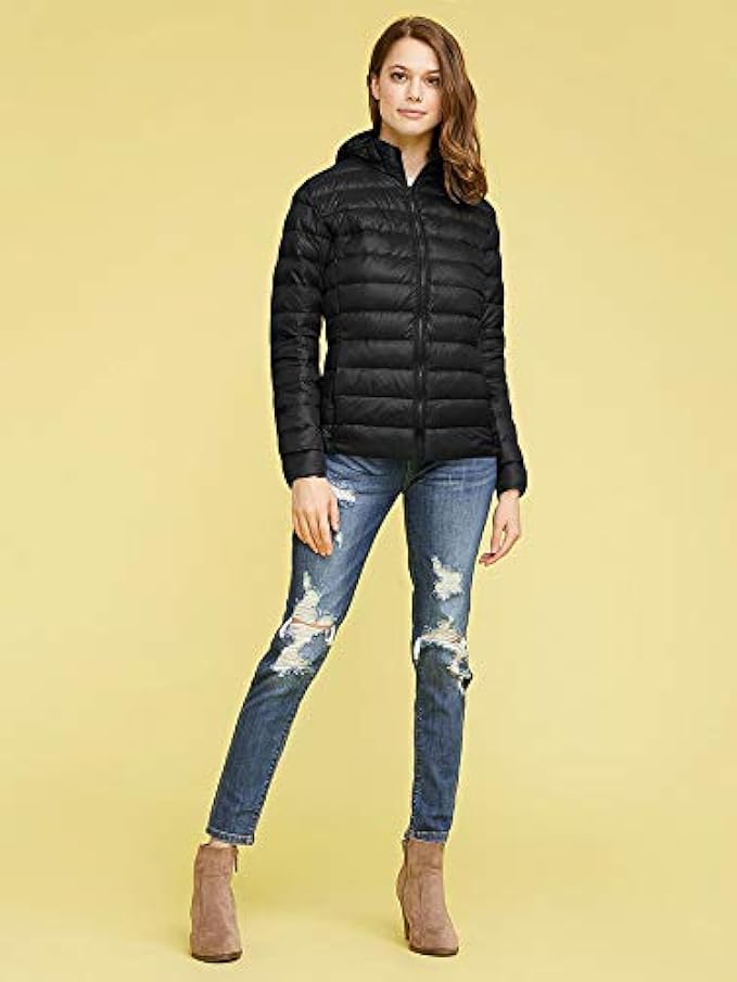 Made By Johnny Women's Ultra Light Weight Packable Down Jacket with Removable Hoodie