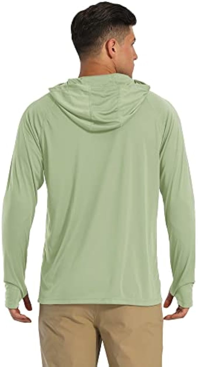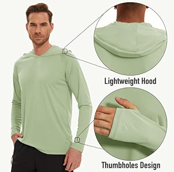 MAGCOMSEN Men's Hooded UPF 50+ Sun Protection T Shirts Long Sleeve Athletic Fishing Shirts Rash Guards