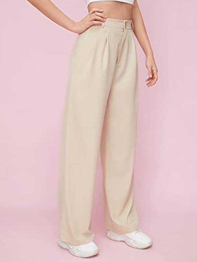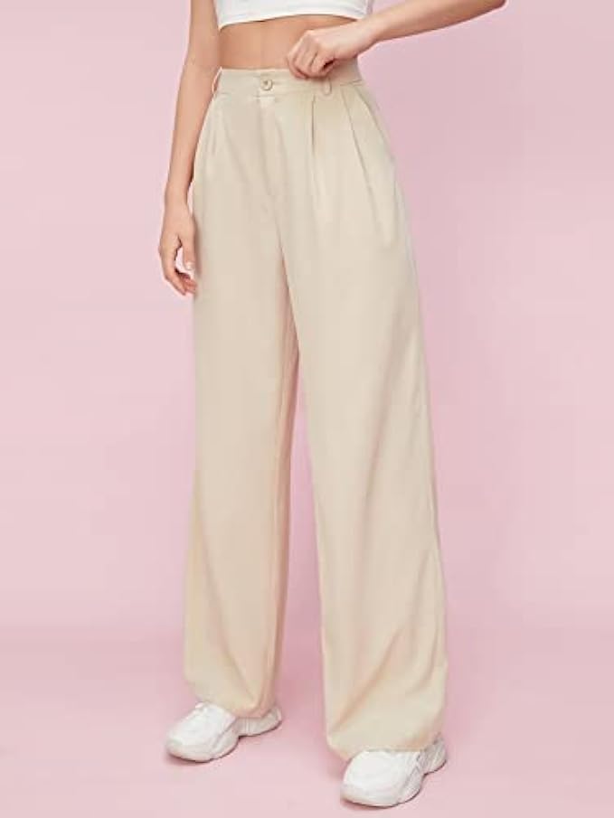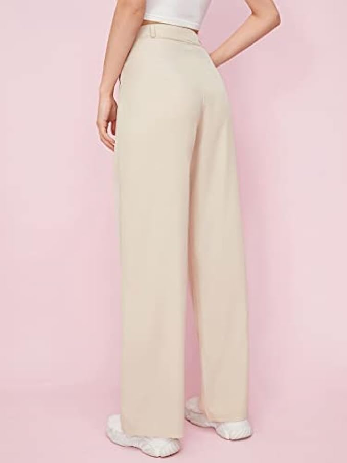 MakeMeChic Women's High Waisted Pockets Work Office Palazzo Wide Leg Pants