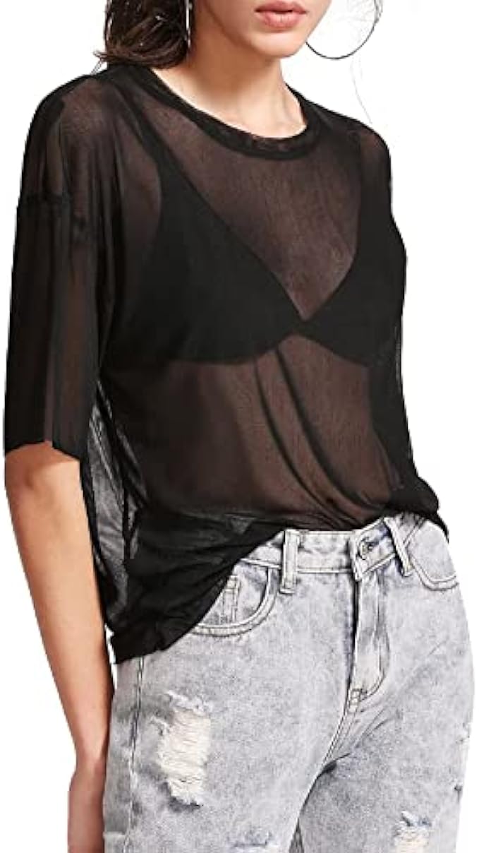 • Chic mesh top is perfectly suitable for summer, it is super sexy look with a black bra