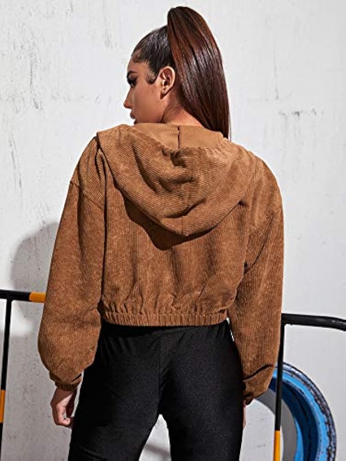 Drawstring, Pocket, Zipper, Long Sleeve, Drop Shoulder, Crop Top, Pocket