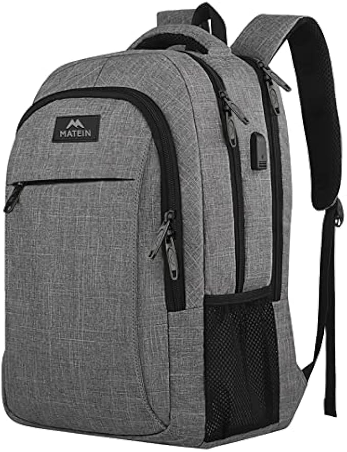 MATEIN Travel Laptop Backpack, Business Anti Theft Slim Durable Laptop Backpack with USB Charging Port, Water Resistant College Bag Computer Bag Gifts for Men & Women Fits 15.6 Inch Notebook, Grey